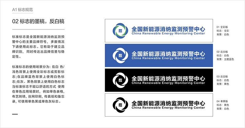 制約新能源消納的關(guān)鍵因素,為新能源的優(yōu)化布局和行業(yè)政策制定提供參考,促進我國新能源高質(zhì)量發(fā)展。 藍藍設(shè)計對全國新能源消納監(jiān)測預(yù)警中心的工作范圍做了調(diào)查研究,首先理解業(yè)務(wù)和核心競爭力,之后調(diào)查了行業(yè)相關(guān)品牌標志設(shè)計,聽取了大家的期望,之后設(shè)計出多版logo供選擇。標志設(shè)計確定后進行了VI和宣傳冊的設(shè)計。