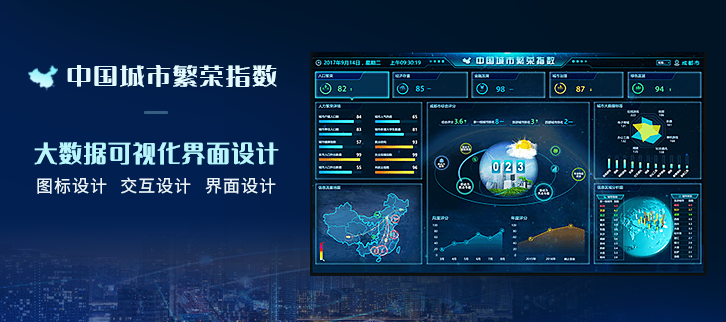藍藍設計經常會接到大屏設計的項目,如洞見技術中國城市繁榮指數大屏界面設計,超圖集團四川統計綜合管理平臺大屏界面設計