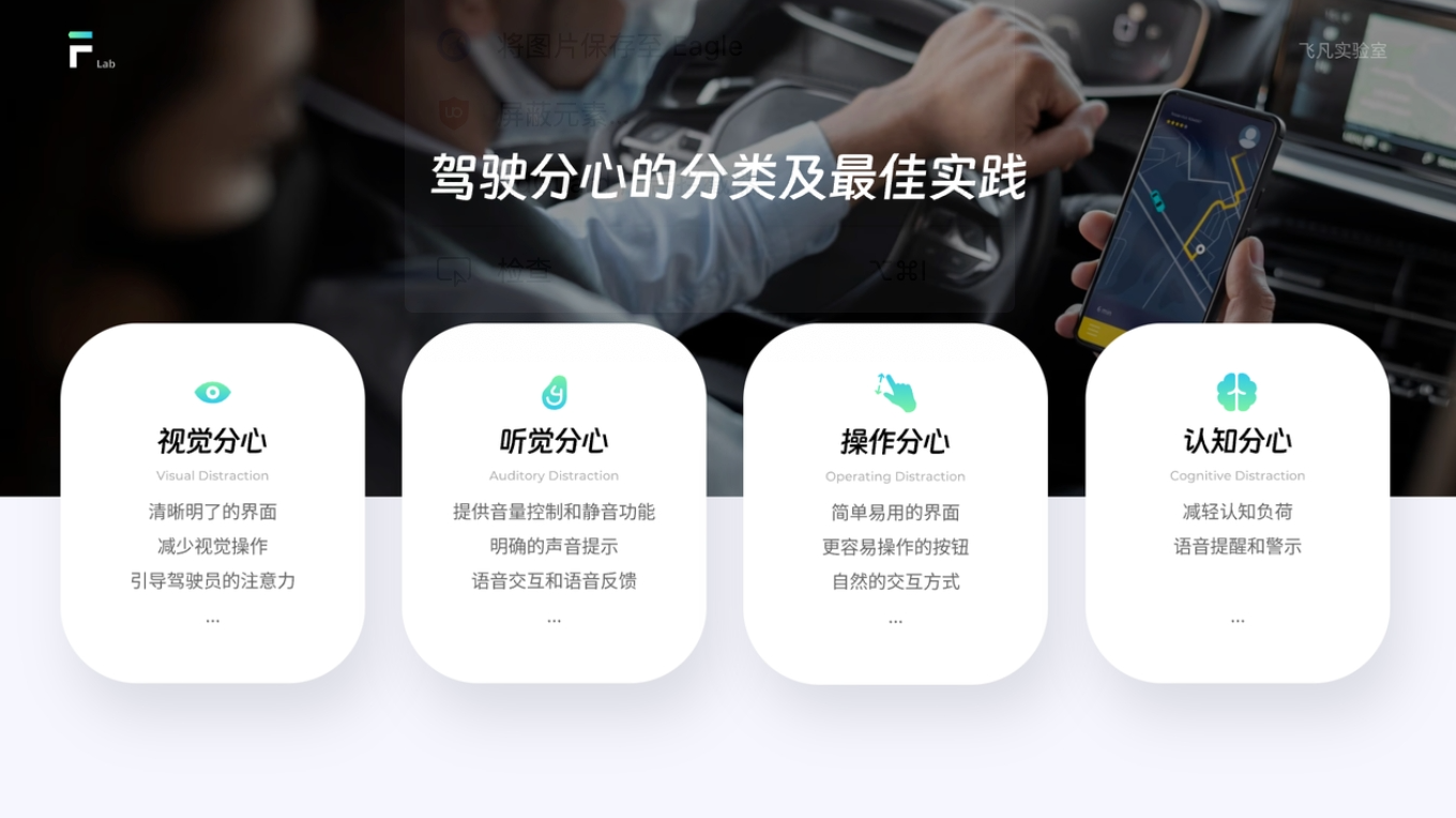 通過了解和分類駕駛分心,我們可以更有針對性地設(shè)計車載界面,減少駕駛員的分心情況,提高駕駛的安全性和效率。同時,提供合適的駕駛輔助功能和注意力提醒,可以幫助駕駛員更好地集中注意力,降低事故風(fēng)險。