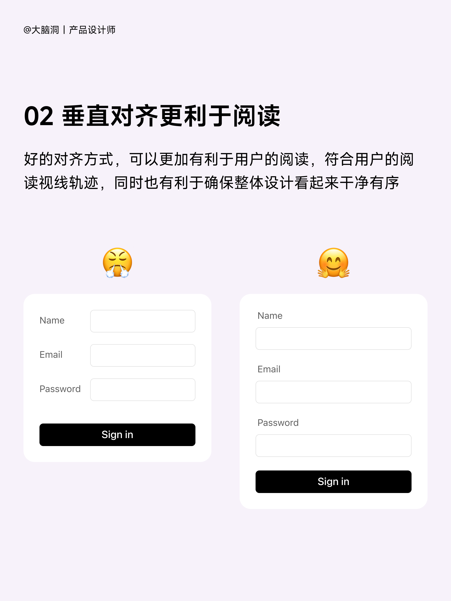 (2)垂直對齊更利于閱讀