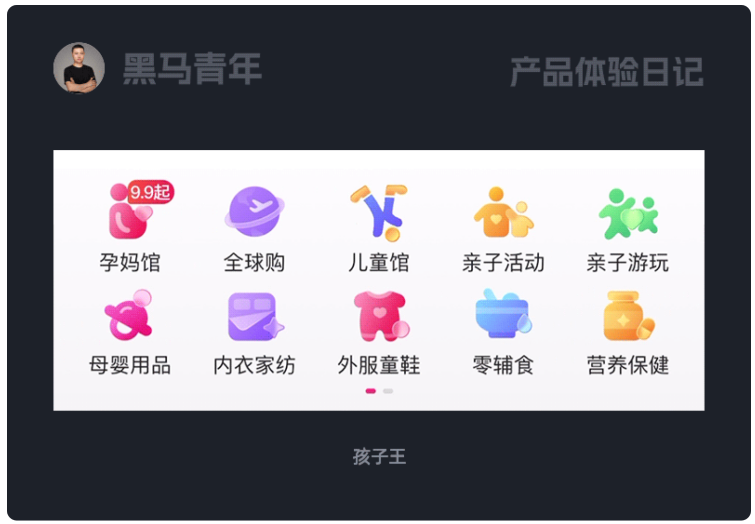 動態圖標是提升模塊關注度的利器,孩子王 App 首頁金剛區的「兒童館」圖標,采用小孩側空翻入場動效。