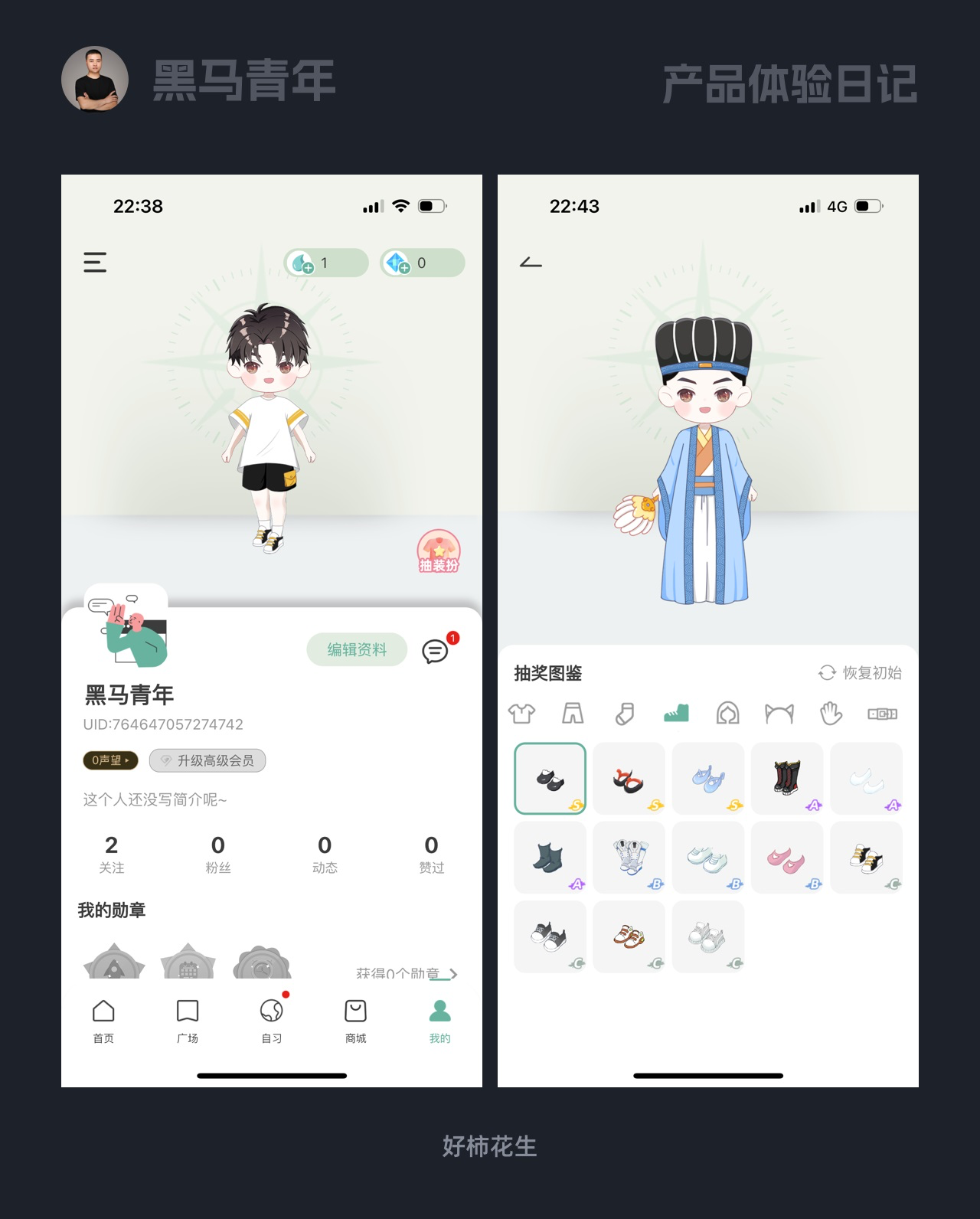 用戶追求專屬體驗,好柿花生 App 在個人中心開放形象自定義功能,裝扮道具可通過抽獎獲取。
