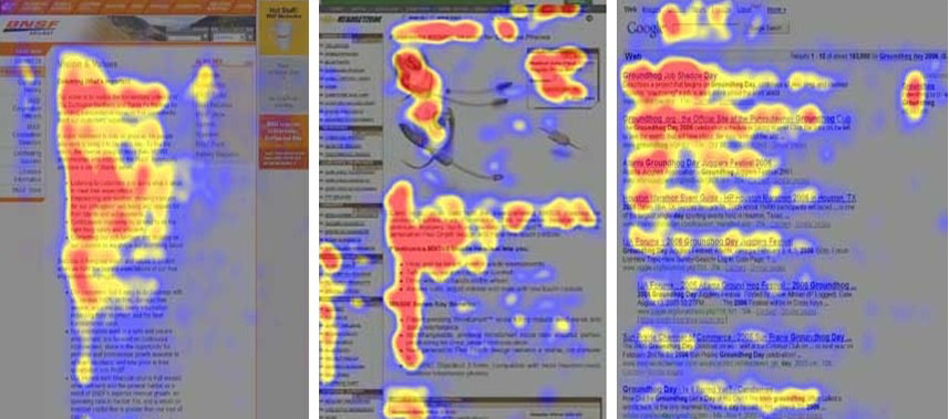 F 型是用戶瀏覽長篇內容的核心模式,眼球以掃描為主,而非深度閱讀,眼動熱圖呈現清晰的字母 F 形態。