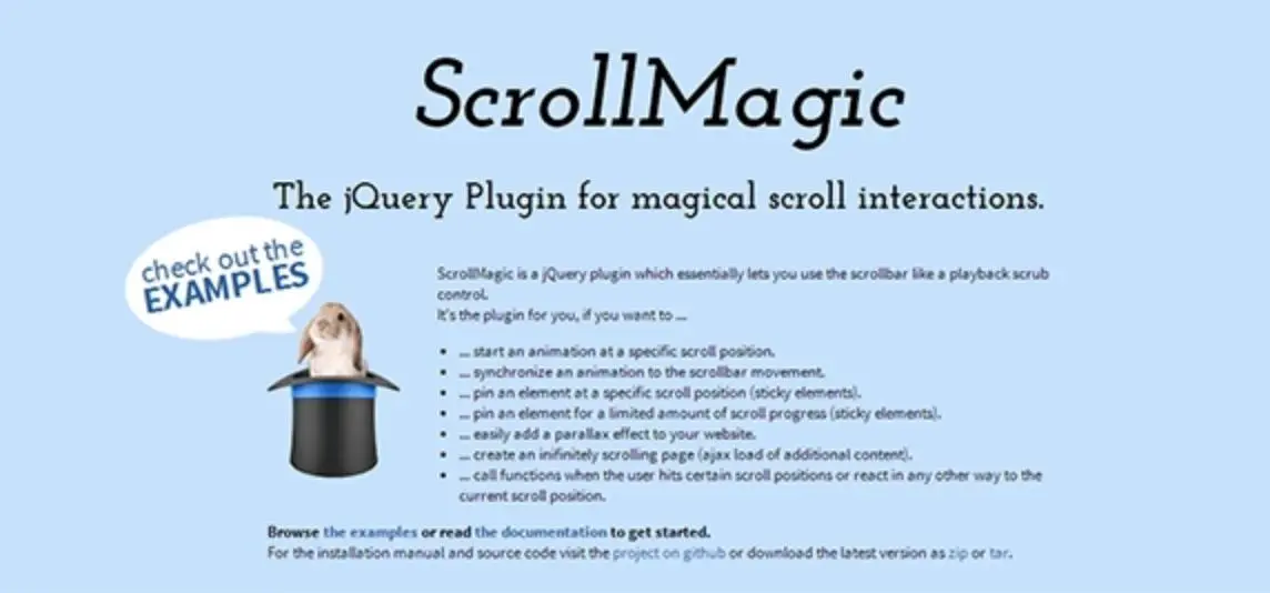二、插件名稱:ScrollMagic 簡介:ScrollMagic是一個強大的滾動動畫插件,它能夠為網(wǎng)頁添加各種視差效果和動畫效果。設(shè)計師可以利用ScrollMagic創(chuàng)建吸引人的滾動交互效果,使用戶在瀏覽頁面時獲得更好的體驗。該插件支持多種觸發(fā)方式和動畫選項,具有良好的性能和可擴展性。