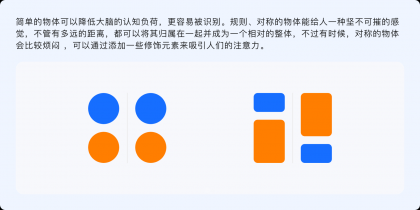 簡單對(duì)稱性原則指出,人們?cè)谟^察事物的過程中第一印象更傾向于簡單且對(duì)稱的物體,當(dāng)看到一個(gè)復(fù)雜的事物時(shí),神經(jīng)系統(tǒng)會(huì)潛意識(shí)地移除無關(guān)細(xì)節(jié)并簡化它們,使其成為簡單且統(tǒng)一的形狀。