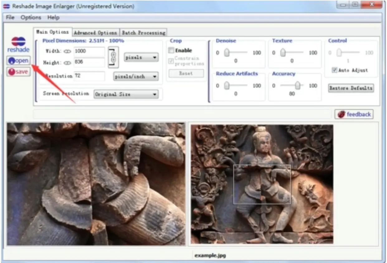 8. 工具八:Reshade Image Enlarger Reshade Image Enlarger是一款功能強大的圖像放大工具,它基于深度學習技術,能夠智能識別圖像細節,并進行高質量的放大處理。該工具還提供了多種放大模式和參數調整選項,使用戶能夠根據具體需求進行個性化的圖像放大處理。