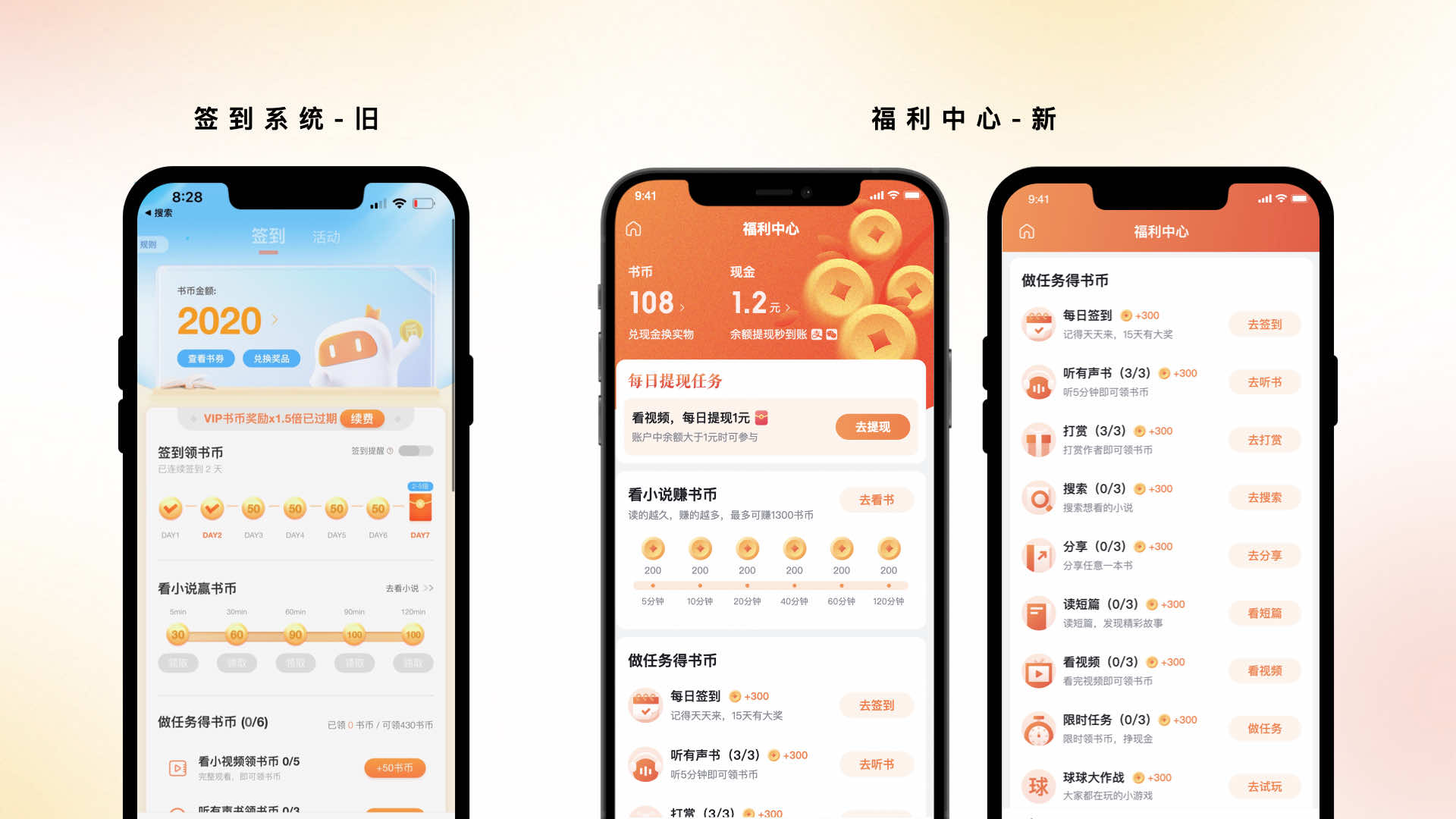 以人為本的設(shè)計能夠讓用戶在產(chǎn)品中獲得成就和滿足感,從而形成愉悅的產(chǎn)品體驗。為了讓用戶能夠獲得滿足的感受,我們將舊版的簽到系統(tǒng)升級為金幣激勵體系,采用做任務(wù)賺金幣的形式,增加用戶的成就感。
