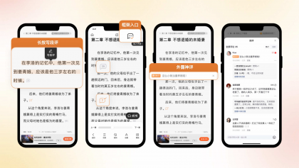 閱讀器場景是用戶使用時長最長的一個場景。因此我們?yōu)橛脩籼峁┝硕卧u功能,方便用戶閱讀過程中和書友進行交流,為了不影響閱讀的流暢性,我們采用弱化的段評圖標(biāo)樣式和色彩,段評入口設(shè)計在段落尾部,減少對閱讀的干擾。