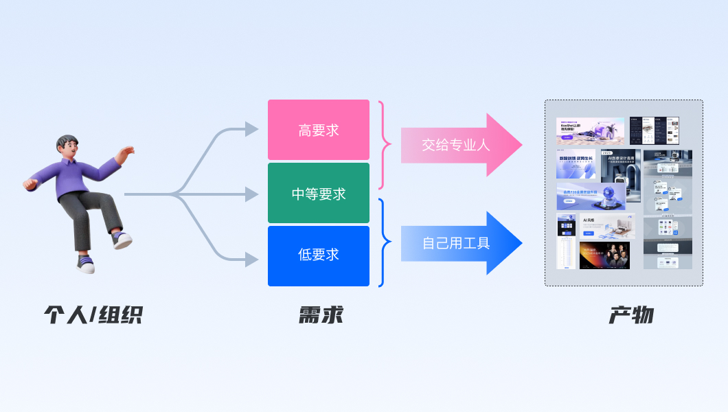 設計越來越平民化,對設計要求不高的個人、團隊、組織將可以靠自己“完成設計”,拿到產物,某種程度上講,這部分中低端設計需求工作被變少了。
