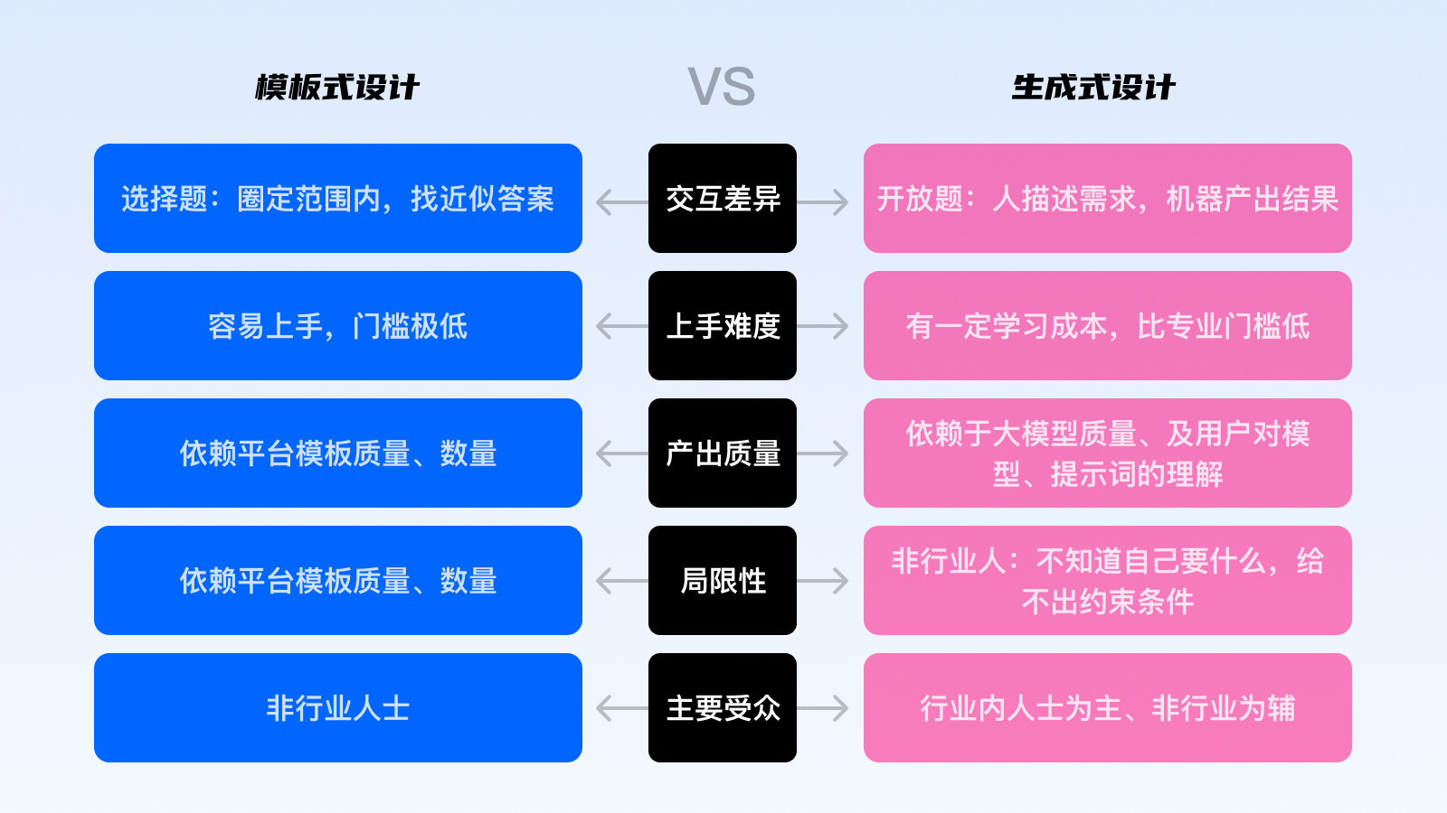 如果不畫圖就快速的產出,模板式設計與生成式AI出圖是擺在面前的兩種選擇,模板式設計不算AI,可以當做“智能產出”,到底哪個好,核心差異在哪?