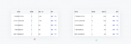 操作右對齊:操作即使沒有縱向分割線也能很好的起到分隔的作用,視覺上看表格是一個方方正正的格子,比較整齊