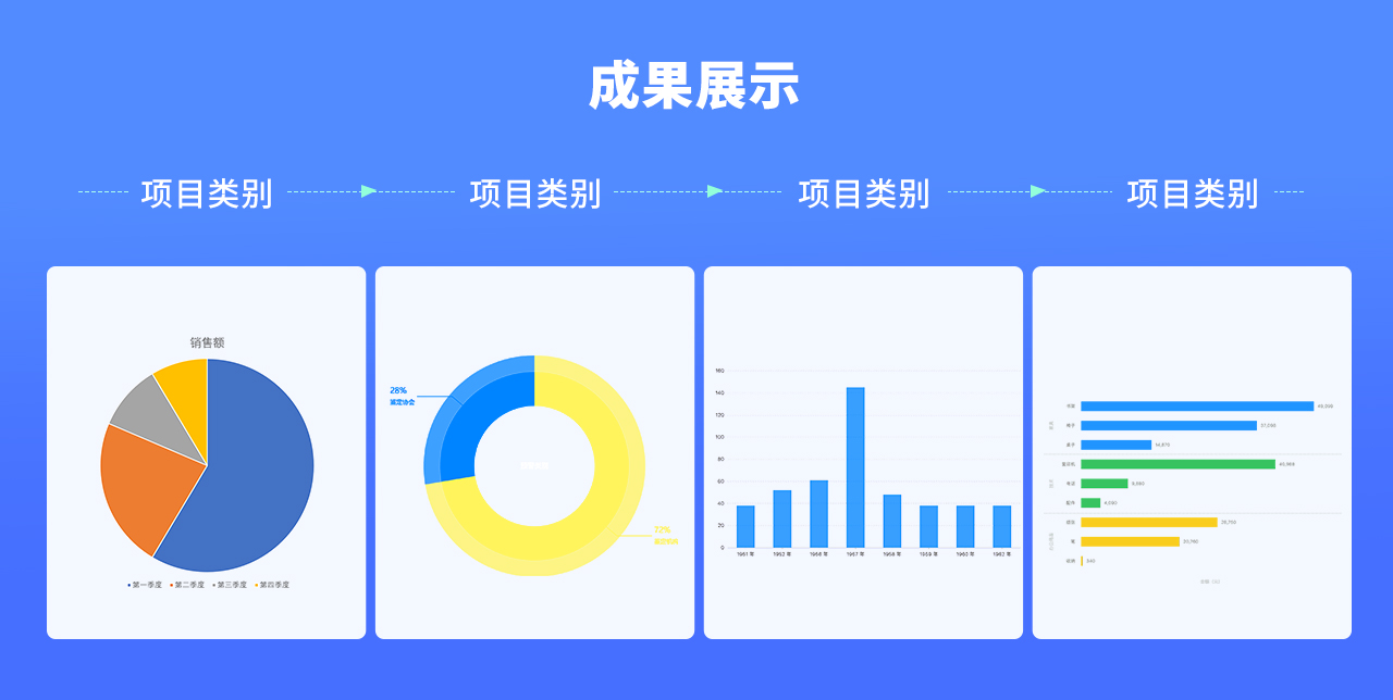 特別是針對需要要數據展示的同學,請記得數據一定要突出,不要一直用字打出來,我們的評委沒有那么多精力去細看分析,這個時候需要你主動展示,把數據單獨拿出來,分析并整理好,采用圖形化的方式去展示,比如對比的去展示,占比可以使用柱狀圖,餅圖,折線圖等,這樣的展示更直觀,更清晰明了,直接把結果灌輸給評委,把人當成傻瓜,結論先行這點很重要。