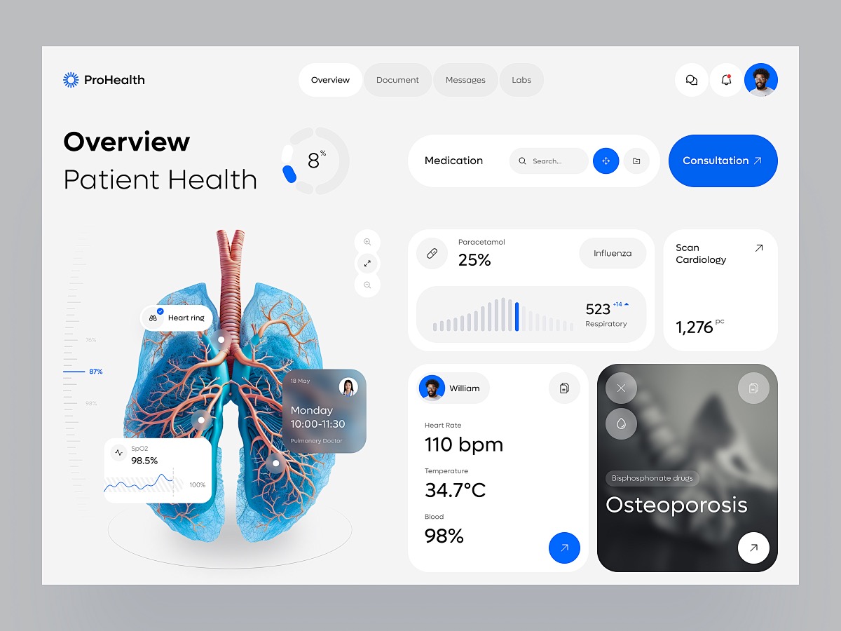 針對患者的醫(yī)療 UI 設(shè)計,功能重點在于信息查詢與服務(wù)獲取?;颊咝枰軌蚍奖愕夭樵冏约旱木驮\記錄、檢查報告、費用明細(xì)等信息,因此在患者端的醫(yī)療 APP 或醫(yī)院官網(wǎng)界面上,應(yīng)設(shè)置專門的信息查詢?nèi)肟?,并以清晰易懂的方式呈現(xiàn)數(shù)據(jù)。同時,提供在線預(yù)約掛號、繳費、藥品配送等服務(wù)功能,實現(xiàn)就醫(yī)流程的線上化,減少患者排隊等待的時間。此外,一些健康管理功能也受到患者的歡迎,如個人健康檔案管理、疾病預(yù)防知識推送、康復(fù)訓(xùn)練指導(dǎo)等。