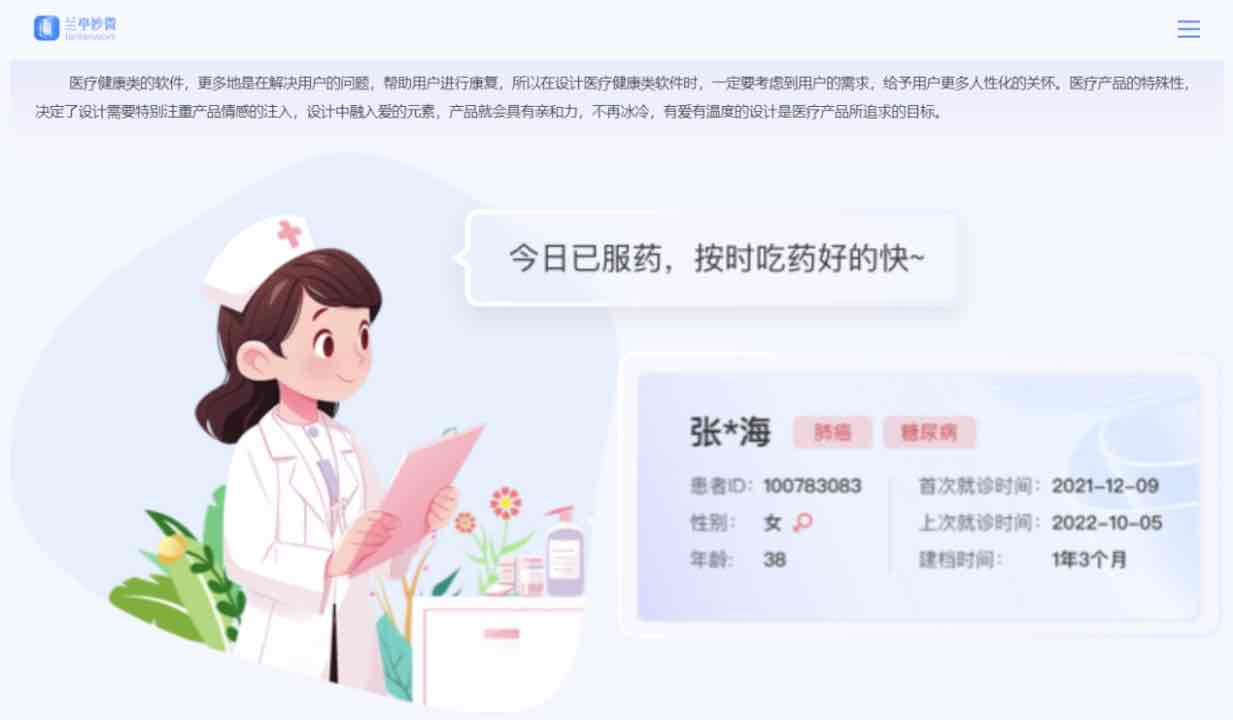 藍(lán)藍(lán)設(shè)計醫(yī)療行業(yè)UI設(shè)計方案亮點將從以下幾點展示: