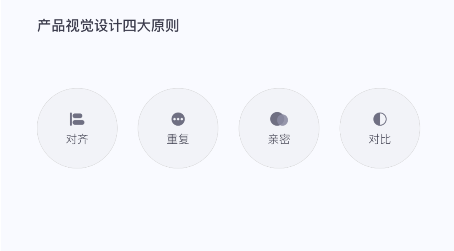 重復比較簡單的理解為一致性,顏色、形狀、材質、空間關系、線寬、材質、空間等等。我們常說視覺規范的一致性就是這樣,保持這些單元的統一,貫穿始終這樣我們的頁面排版才會整體、產品設計才會整體。