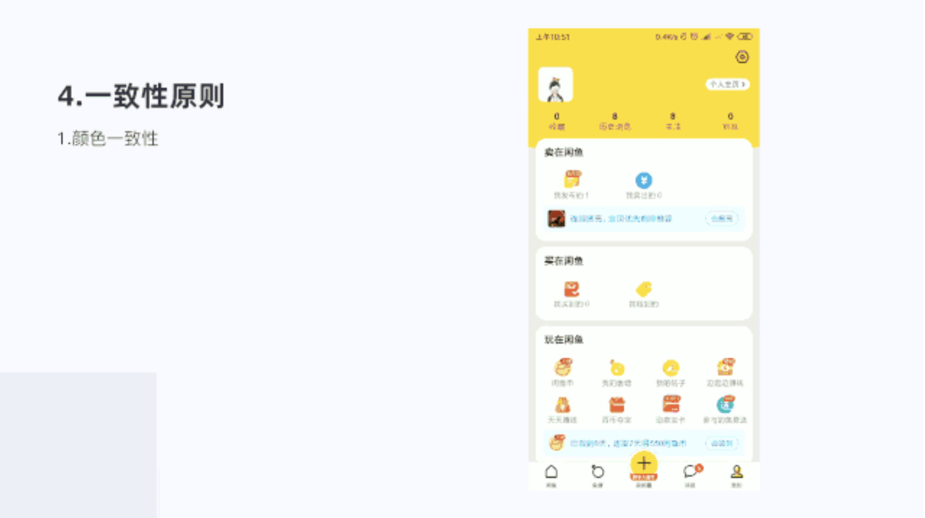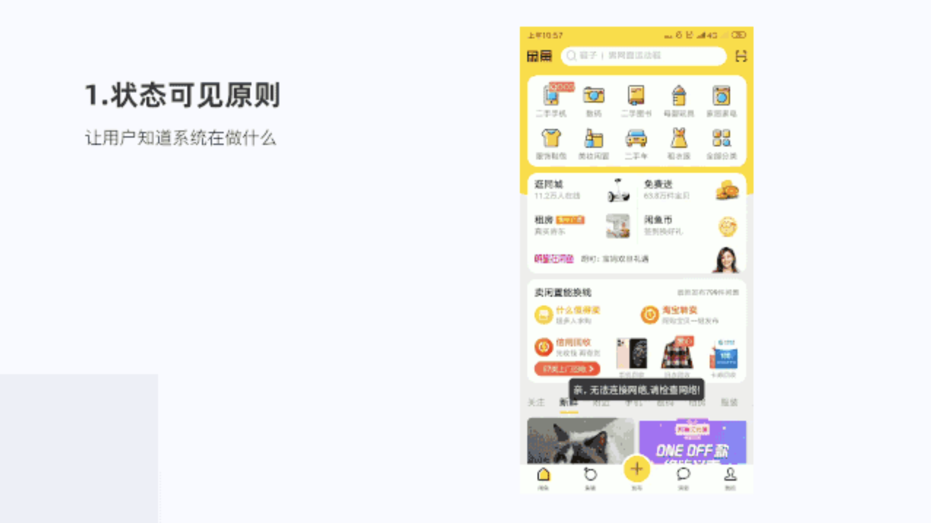 今天我們主要從用戶體驗的部分原則來看閑魚,主要以產品視覺設計四大原則、交互設計十大可用性原則、情感化設計來看閑魚