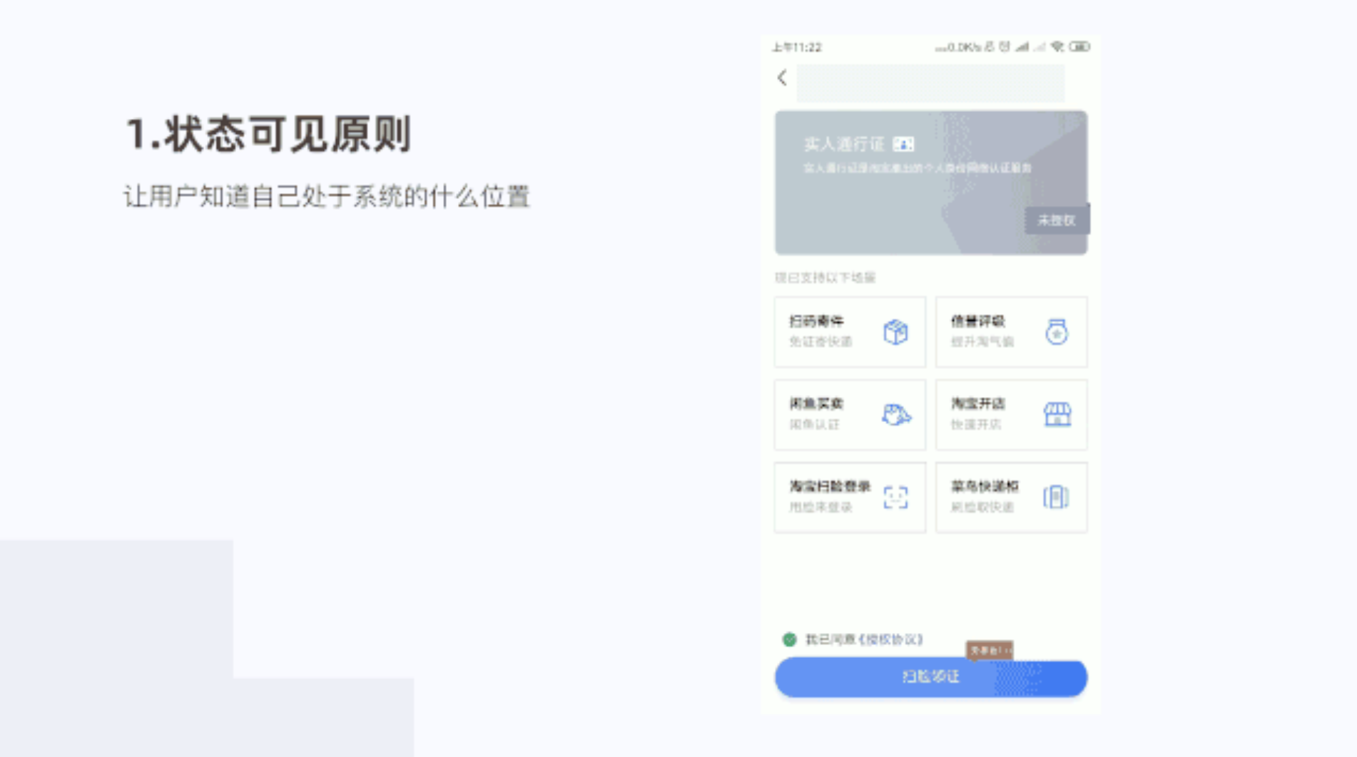 在閑魚頁面我們系統的標題欄、TAB欄的提示貫穿整體,用戶知道我們所處的什么頁面。比如認證提示,每一步告知用戶進行到哪里了。