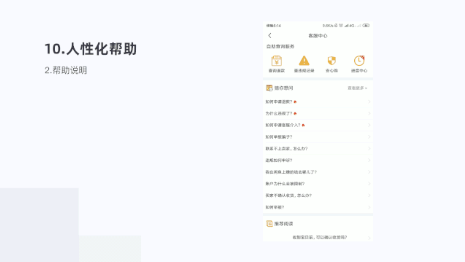 閑魚的幫助說明功能更加全面,滿足不用用戶場景的問題需求,也能及時和客戶進行咨詢反饋信息。