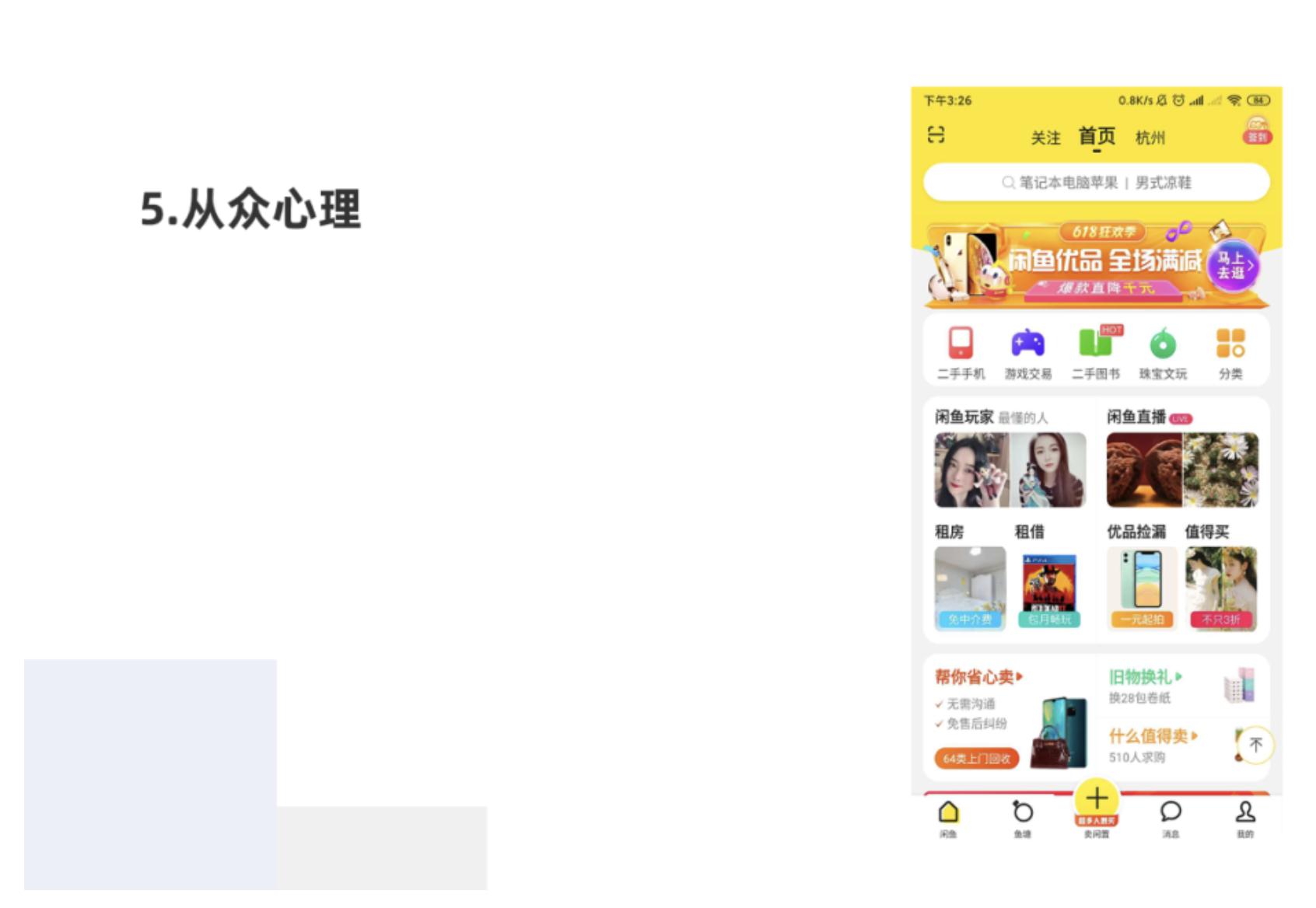 閑魚首頁,什么值得買模塊,提示510人求購,告知用戶大家都在買,你在等什么。