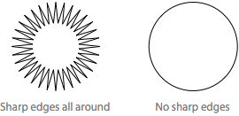我們之所以對圓角情有獨鐘,另一個解釋是,圓角更符合我們在現(xiàn)實世界中使用日常物品的方式 [3]。圓角隨處可見。作為孩子,我們很快就知道尖角容易傷人,圓角更安全。這就是為什么當(dāng)孩子玩球時,大多數(shù)父母并不感到驚慌。