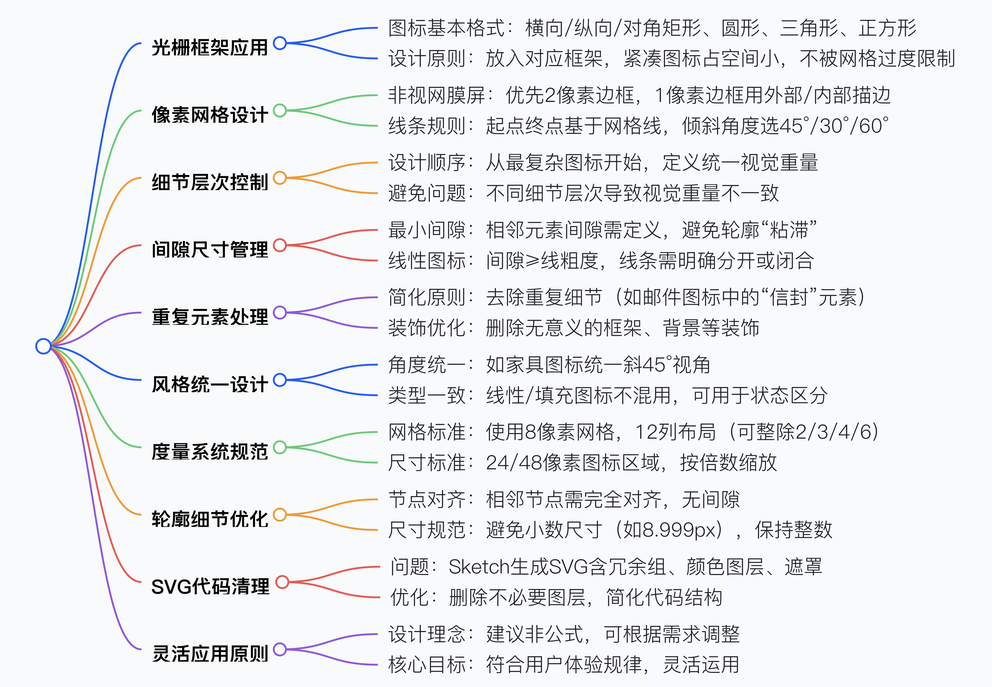 UI 界面圖標(biāo)設(shè)計(jì)的 10 個(gè)關(guān)鍵細(xì)節(jié):使用光柵框架確保圖標(biāo)視覺(jué)重量一致,設(shè)計(jì)時(shí)注意像素網(wǎng)格重要性、優(yōu)先 2 像素邊框,從最復(fù)雜圖標(biāo)開(kāi)始設(shè)計(jì)以保持細(xì)節(jié)層次統(tǒng)一,控制相鄰元素最小間隙、避免輪廓 “粘滯”,去除重復(fù)圖形元素以簡(jiǎn)化設(shè)計(jì),保持圖標(biāo)風(fēng)格(如角度、線性 / 填充)一致,基于 8 像素網(wǎng)格等二倍數(shù)度量系統(tǒng)設(shè)計(jì),確保輪廓節(jié)點(diǎn)對(duì)齊、尺寸為整數(shù),清理 SVG 代碼中的冗余圖層,同時(shí)強(qiáng)調(diào)這些建議需靈活應(yīng)用而非刻板遵循。