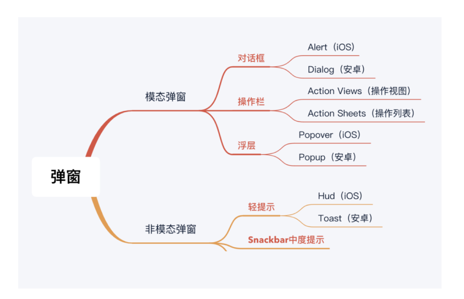 - 常見類型:對(duì)話框(Dialog/Alert)、底部動(dòng)作欄(Actionbar)、浮層(Popover/Popup)。