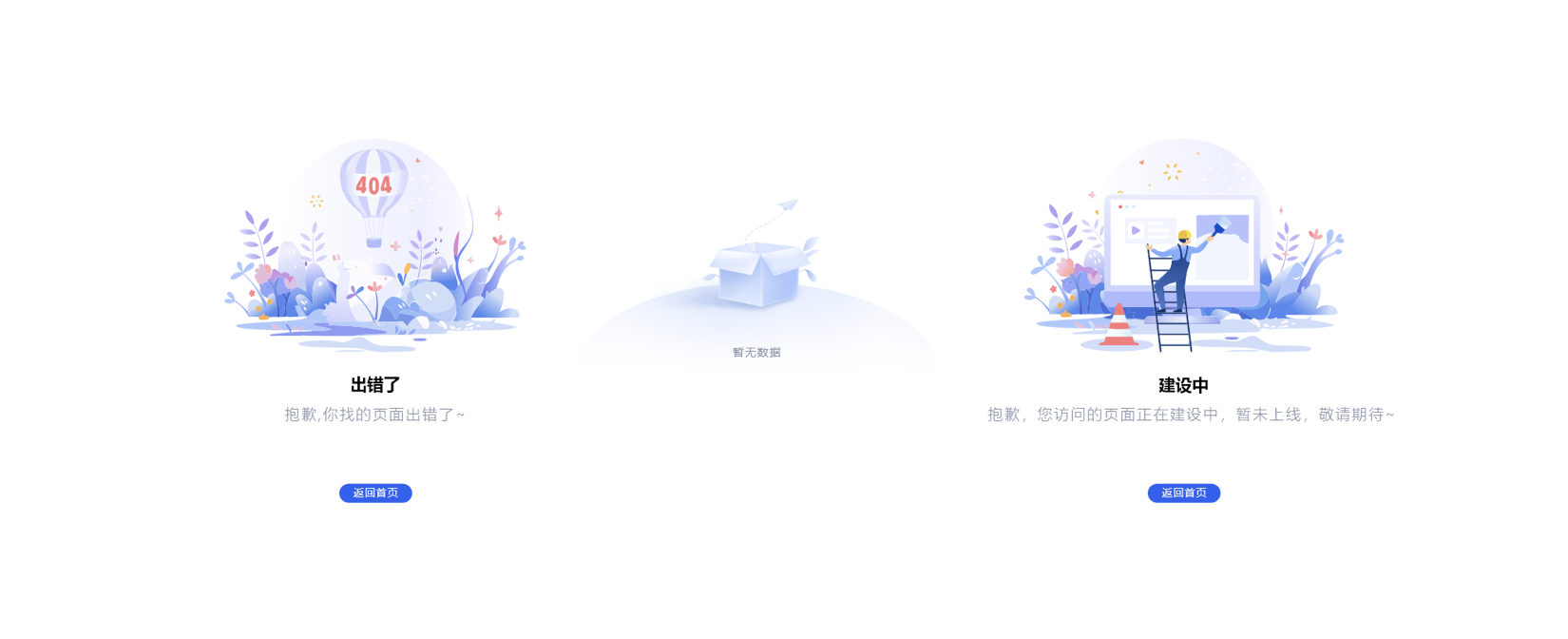 - 狀態(tài)提示圖標(biāo):緩解用戶焦慮。如 “404 頁面” 的 “迷路小圖標(biāo)”、“暫無數(shù)據(jù)” 的 “空文件夾圖標(biāo)”,讓用戶理解當(dāng)前狀態(tài);