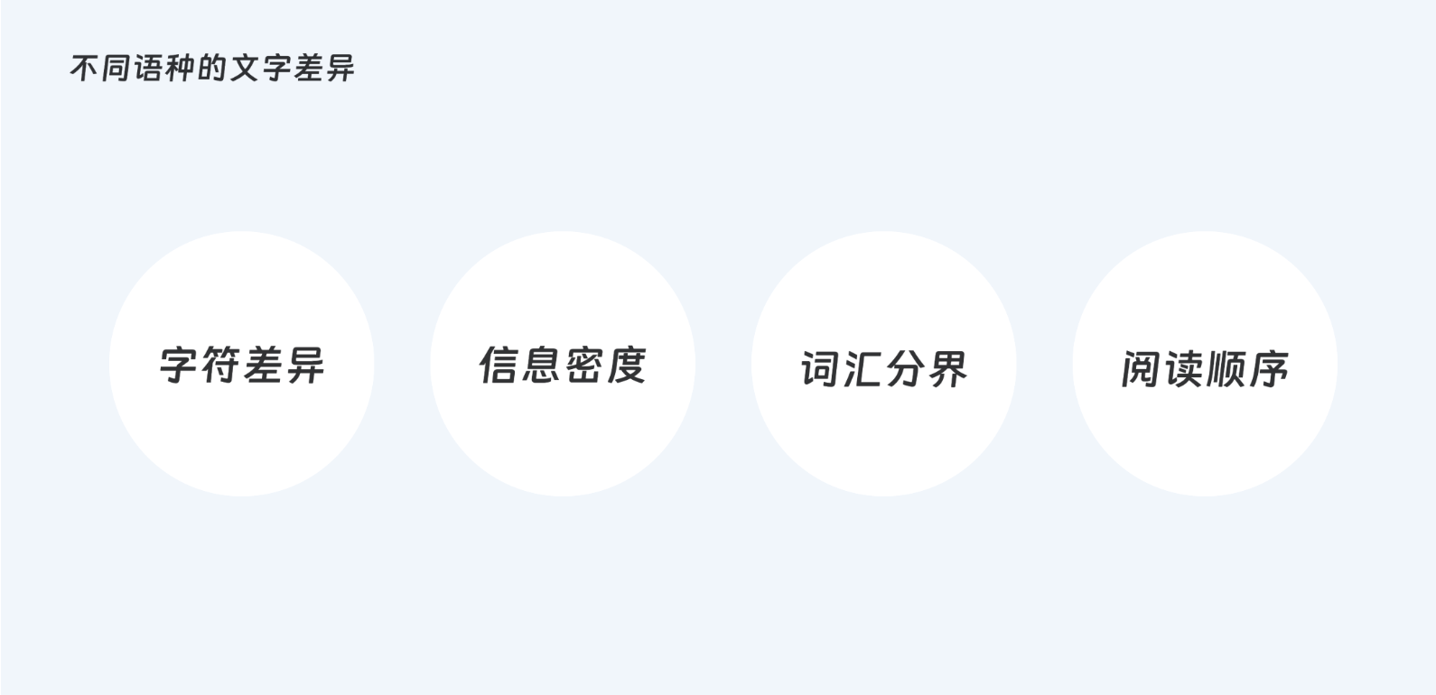 語言文字是文化差異最直觀的體現(xiàn),而其中四類差異對界面設(shè)計的影響最為顯著,直接決定了適配方案的方向: