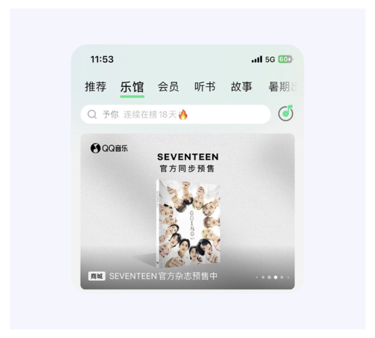 靜態(tài) Banner 以單一或多圖輪播的形式存在,是多數(shù)產(chǎn)品的 “首選方案”—— 它的優(yōu)勢在于設(shè)計成本低、技術(shù)適配簡單,且能避免動態(tài)元素對用戶的干擾,尤其適合信息密度低、需快速傳遞核心內(nèi)容的場景。比如 QQ 音樂首頁的專輯推薦 Banner,用靜態(tài)圖片突出藝人形象與專輯名稱,配合自動輪播的時間軸切換,既保持了視覺簡潔性,又實(shí)現(xiàn)了 “多內(nèi)容展示” 的需求;再如電商 APP 的促銷 Banner,靜態(tài)畫面搭配清晰的 “折扣信息 + CTA 按鈕”,讓用戶一眼就能抓住 “滿減”“限時” 等關(guān)鍵信息,無需在動態(tài)效果中尋找重點(diǎn)。