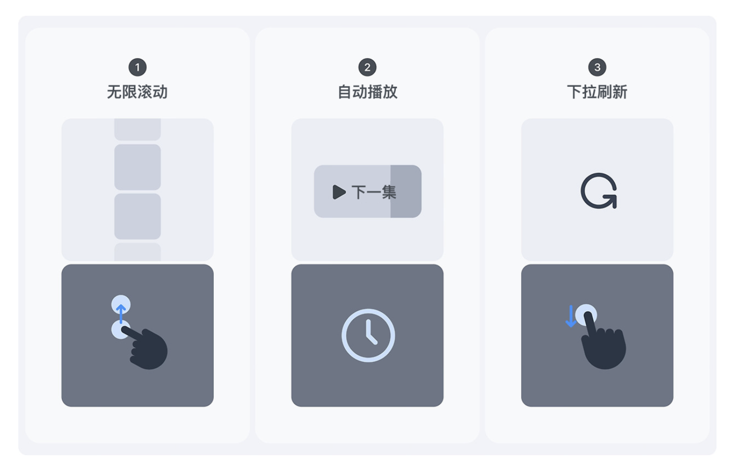 自動播放 減少點擊操作,流程更順暢 強制推送不感興趣的內容,被動消耗時間