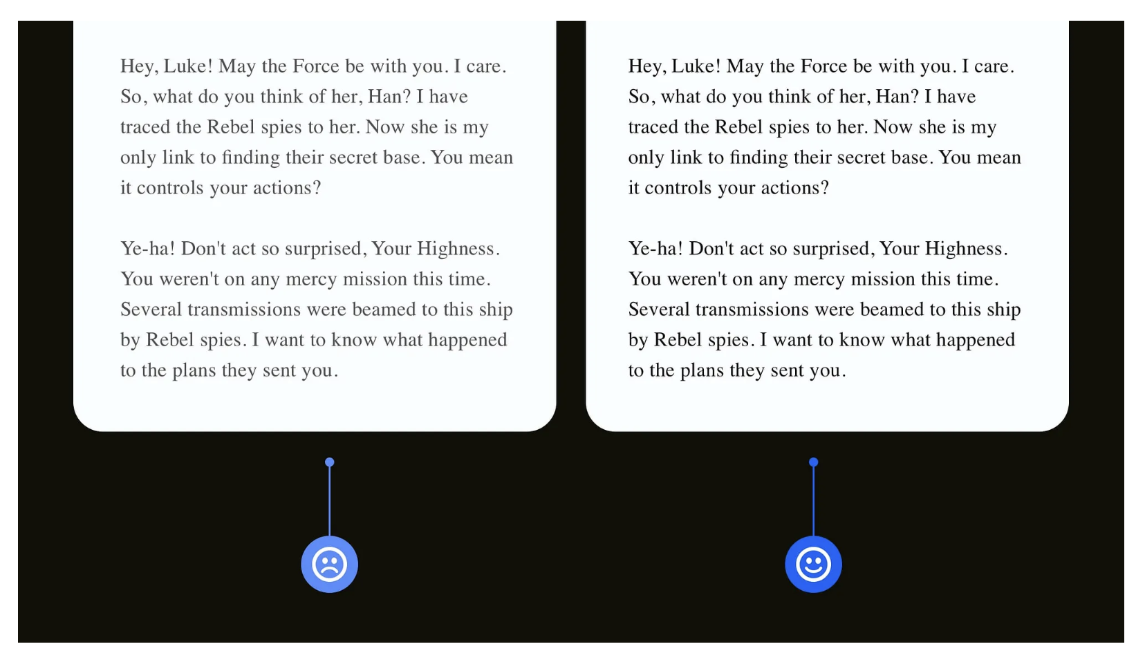 深色模式雖受用戶喜愛,但純黑背景搭配純白文字會產生強烈對比,導致散光用戶出現 “光暈”“閃爍” 等視覺不適。優化方案是:將背景色調整為深灰色(而非純黑),文字顏色設置為 85%-90% 不透明度的白色,同時適當增加行間距(1.5-1.8 倍),減少文字密集帶來的視覺壓力。此外,允許用戶手動調節深色模式的對比度和亮度,滿足不同用戶的視覺需求。