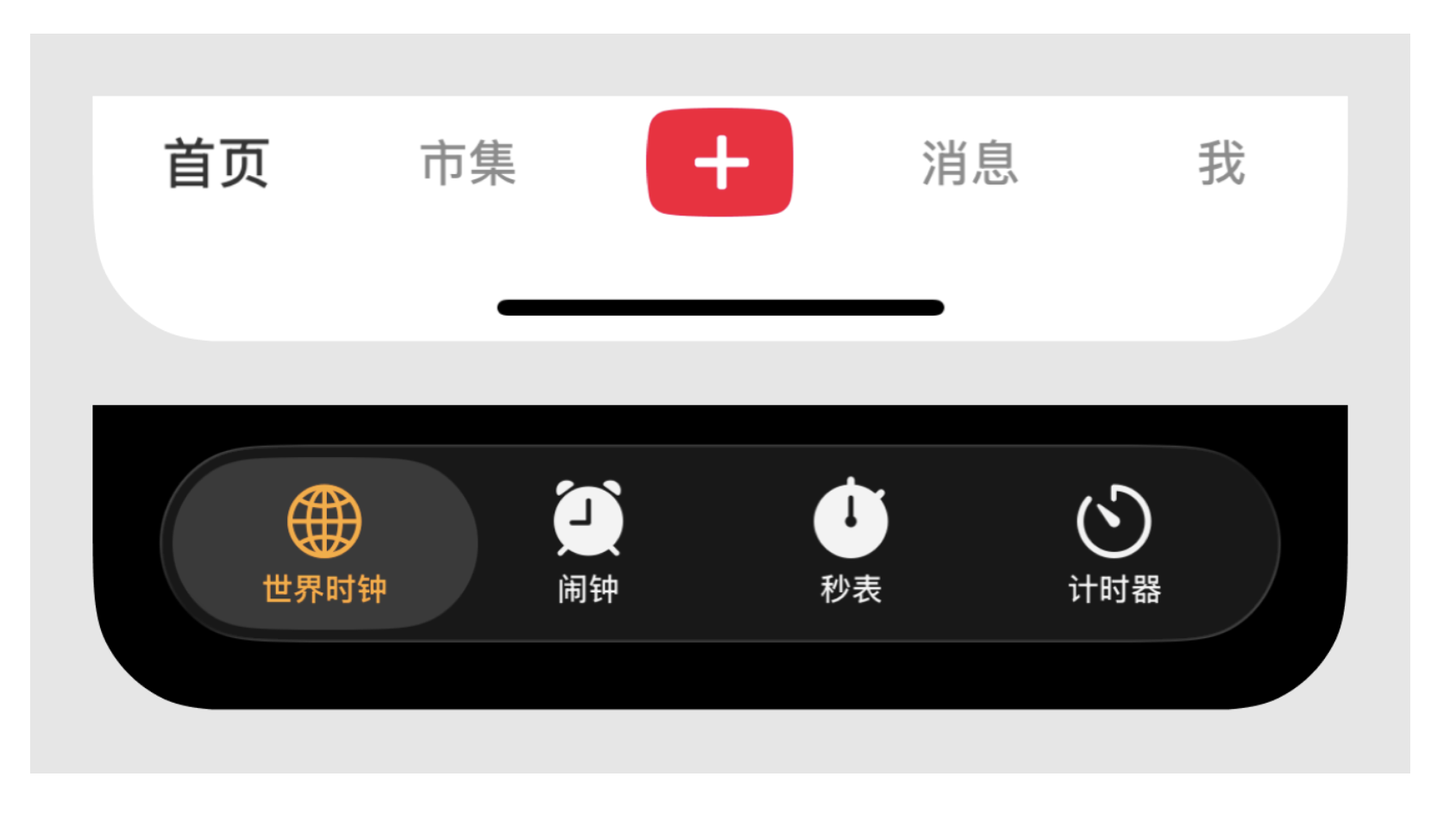 App 最高級別的導航控件,用于在頂級界面間快速切換,默認位于屏幕底部(可自定義懸浮樣式)。僅層級最高的核心界面需保留標簽欄,下級頁面可根據需求取舍。iOS26 新增懸浮式標簽欄,支持與其他控件并列布局,還能根據頁面滾動、點擊狀態動態收起 / 展開,減少對內容瀏覽的干擾。