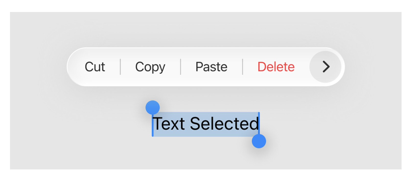 菜單的特殊細分類型,聚焦文本、圖片等內容的編輯操作,包含剪切、復制、粘貼、全選、翻譯等固定命令。iOS 會自動根據選中數據類型匹配相關操作(如選中地址時新增 “獲取路線”),無需額外自定義。iOS26 中取消了指向內容的小箭頭,邊框改為全圓角設計,視覺更簡潔。