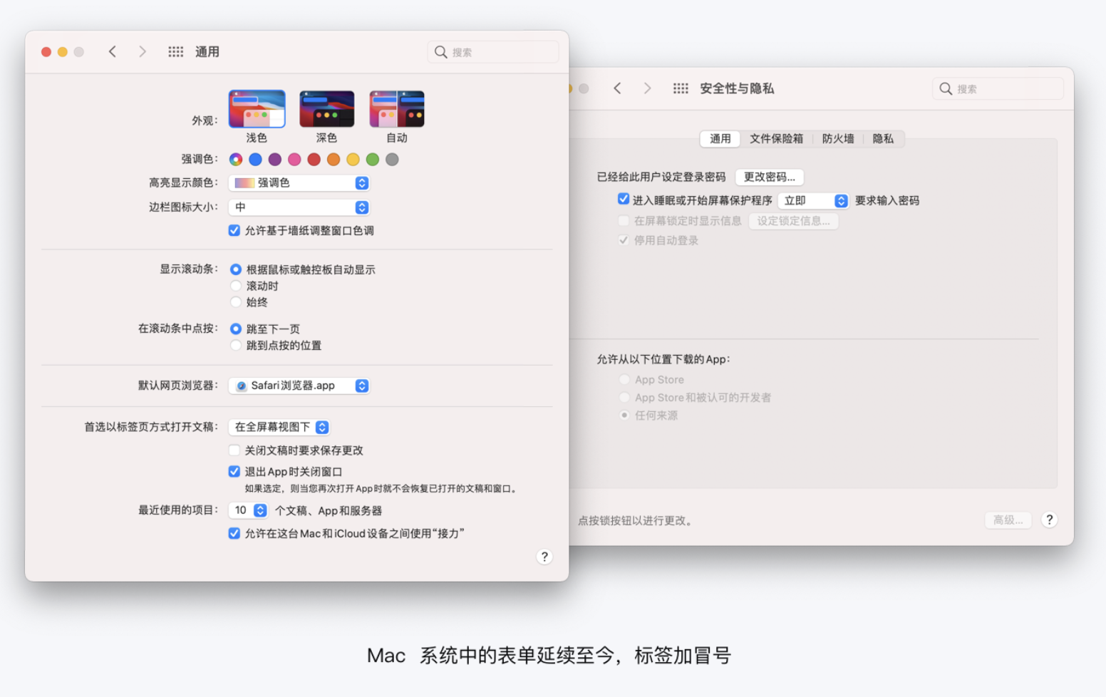 但這并不意味著冒號需要被徹底摒棄,它早已成為部分設計系統與桌面端的傳統習慣 —— 如蘋果 Mac 系統、阿里 Ant Design 設計系統仍保留冒號設計,形成了用戶的視覺慣性。