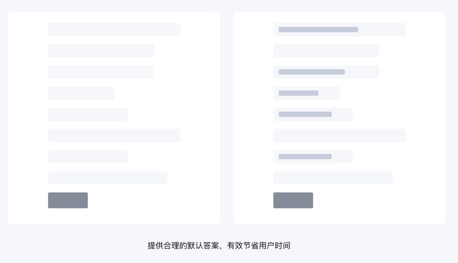 表單填寫對用戶而言是 “非愉悅性任務”,每減少一次輸入、一次選擇,就能提升一分用戶體驗。合理的默認值不僅能節省用戶時間,即便默認值并非用戶所需,也能為用戶提供輸入示例,明確填寫格式(如身份證、手機號、日期),避免因格式錯誤導致的提交失敗。