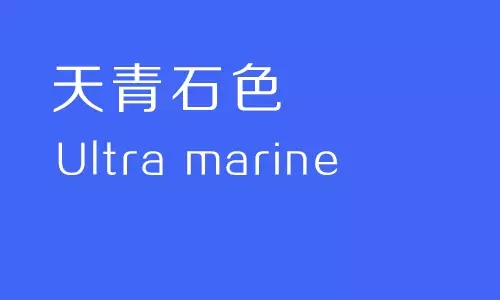 Ultra marine的意思是來自遙遠的海的那邊。天青石色顏料過去在歐洲十分稀少,要從其他地方歷經周折運輸過來,是一種十分珍稀的顏料。現在可以人工合成,主要用來指稱偏深藍的藍色。