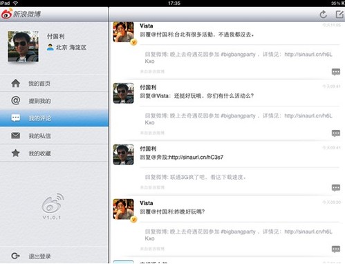 新浪微博ipad界面欣賞之一