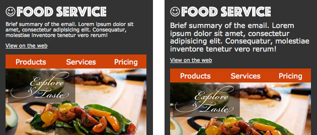 嚴(yán)禁復(fù)雜 —— 尤其是在郵件上。始終避免使用復(fù)雜的結(jié)構(gòu),否則在小屏幕上渲染時(shí)一定會失敗。請記住許多設(shè)備是不支持媒體查詢的(例如谷歌郵件),所以我們不能指望成熟的內(nèi)容重排技術(shù)。