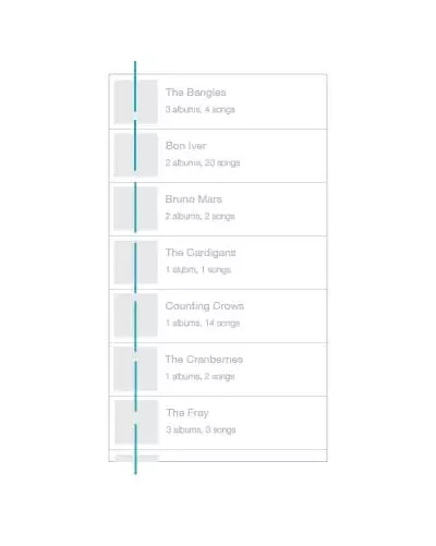Rdio的APP設計就遵循著這樣的設計規則,屏幕兩側的控件是相同的規格,這類布局很適宜閱讀,用戶會自覺地自上到下,從左向右查看。