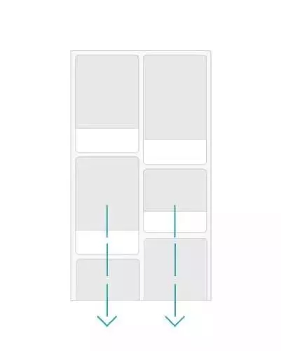 Pinterest的APP中就是這樣做的,持續不斷的圖片沿著中軸線的方向持續不斷地滾動下去,只要你有興趣一直觀看下去。
