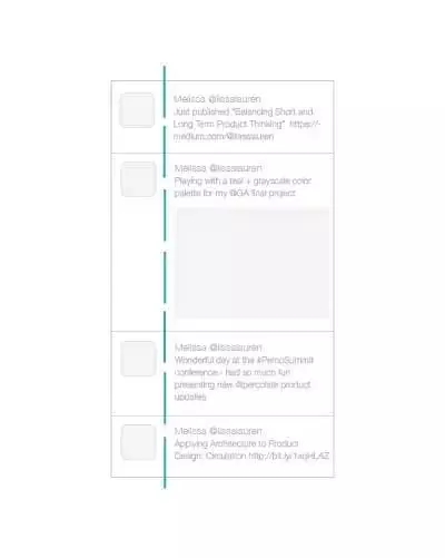 從產品設計的角度上來看,Twitter 的時間線設計就是一個很好的案例,左側的頭像和右側的推文共同塑造出縫隙中軸線的感覺。