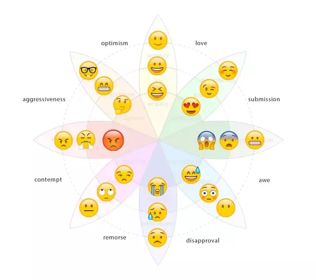 Huge 的用戶體驗主管 Sherine Kazim 曾經設計了一個基于emoji 表情符的情感輪,它將我們所熟知的色輪和情緒、emoji 表情結合到了一起,并加入了相應的關聯。如果你想知道色彩是如何影響設計,不妨從這個色輪開始著手了解。