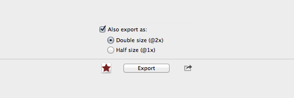 Sketch 擁有最強的導出功能,只要點擊 File > Export 和畫出你所需要的切片(slices) 便可。你也可以用@1x匯出@2x的解像度。相對地,你也可以用@2x導出@1x的圖像。