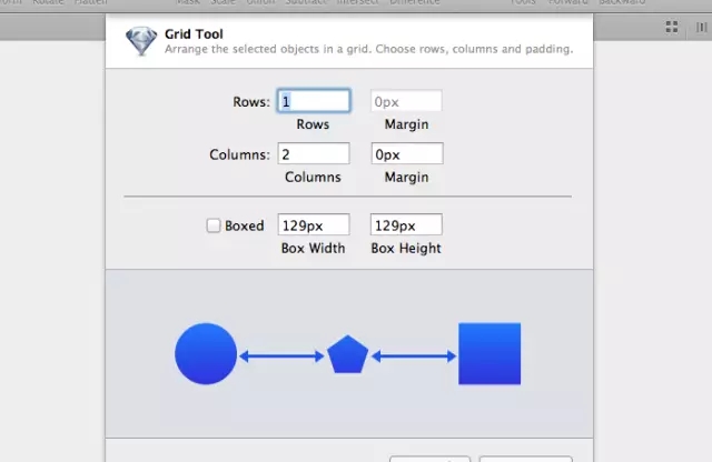 Sketch 有一個稱為 “Create grid” 的功能。點擊工具欄中的四個方格(如圖右上方的圖像),就會跳出一個菜單,在這里你可以設(shè)定你所需的行數(shù)和列數(shù)。