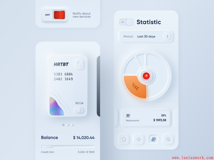 新擬態是一種圖形樣式,其原理是通過簡單富有層次的光影變化為界面的UI元素賦予真實感。新擬物算擬物風格的一種,只不過表現形式相對特立獨行,最早出現在國外網站dribbble上,之后陸續被收錄在2020設計趨勢預測中,在2019年的年末慢慢被大家熟知,討論,重視起來。