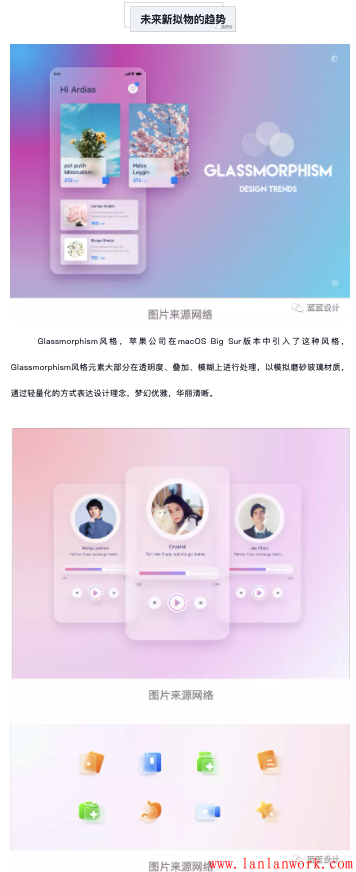 從輕擬物風格到Glassmorphism風格,擬物化設計的演變進程已然開啟,未來,無論是3D設計的加入還是扁平風格的延續,“質感”都將成為設計過程中被著重強調的風格。