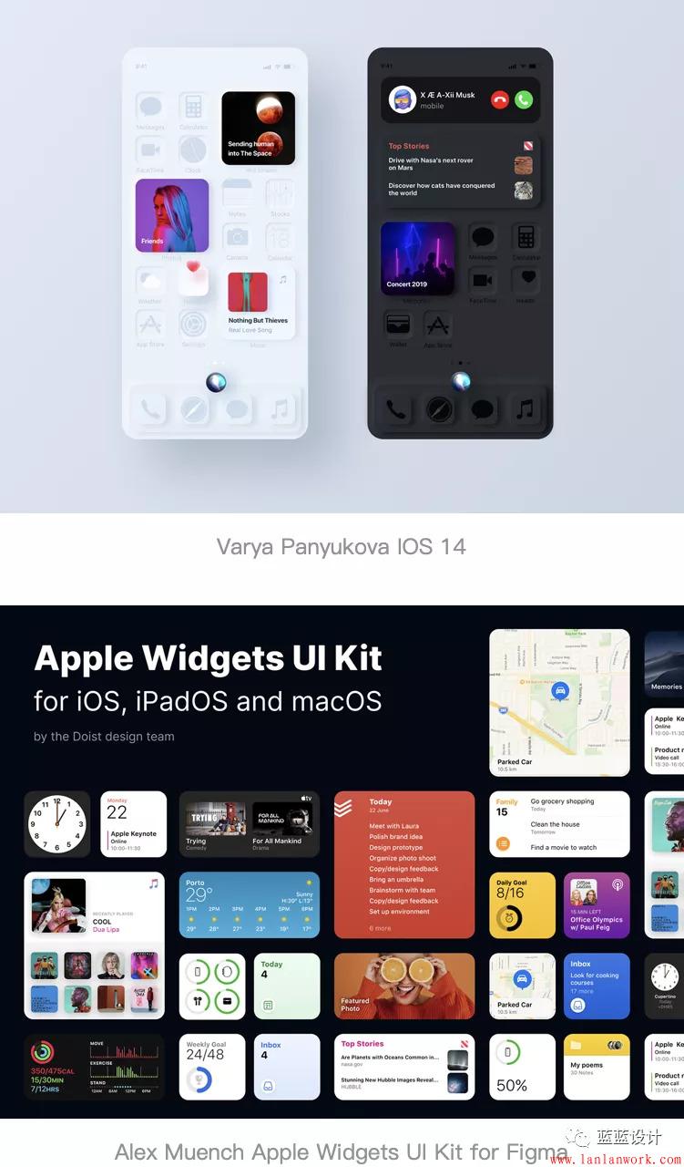 ios14的界面更新將影響所有的UI設計。ios14新推出的Widgets小工具分為大、中、小三種尺寸,用戶可以自由布置界面。因此設計師需要設計3種樣式的Widgets小工具圖標。