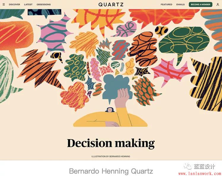 這種風格的插畫非常像凌亂的涂鴉,乍看未完成,但所有的細節都是經過深思熟慮的。重疊的形狀和強烈的色彩讓這些插畫與眾不同,同時能有效激發靈感。