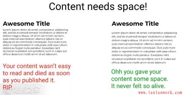 要給內(nèi)容足夠的呼吸空間。在頁(yè)面發(fā)布之前,請(qǐng)確保在不同的設(shè)備上測(cè)試留白,以確??勺x性。
