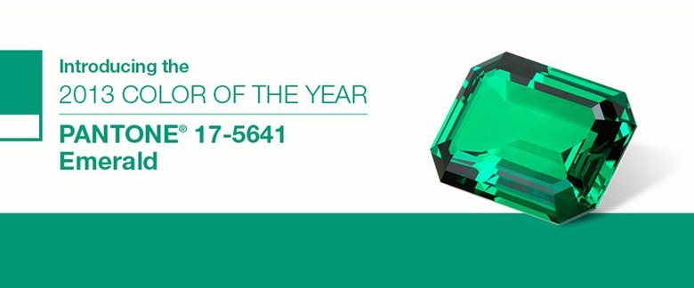 色彩公司pantone 最近選擇了綠寶石色(emerald :17-5641 )作為2013 年的年度顏色,在他們的描述中,綠寶石色“ 生動,光芒四射,有魅力…… 是一種代表了優雅和美麗的顏色,加強了我們個人的自然存在感,帶給我們平和心態” 。